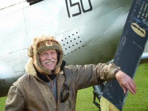 We all trooped through the Museum display and it was surprising to hear that many of our Members had an unexpected range of knowledge about some of the Aviation exhibits.   Our own ‘Biggles’ Bostock came fully decked out in his WWII avaitors’s gear (see pic) – and he needed it travelling in his MX5 with the hood down for the journey!